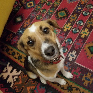 Mickey and his sister Minnie were abandoned as very small puppies. They lived on the street for a bit, fending for themselves against the cats, other dogs, and foxes. A nice person would sometimes feed them with the stray cats. Eventually, they ended up at Vrouva, afraid of people and completely overwhelmed. It took months before they would let anyone approach them...and more time before I could get a lead on them to take them on walks. It took over a year before Mickey would let me pick him up. And then another before he started to want to be picked up!